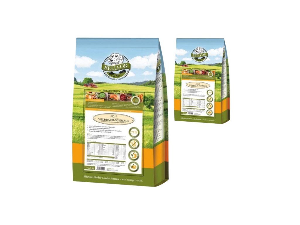 7,5kg + 2,5kg Wildbach Schmaus - losos a pstruh, granule pro psy
