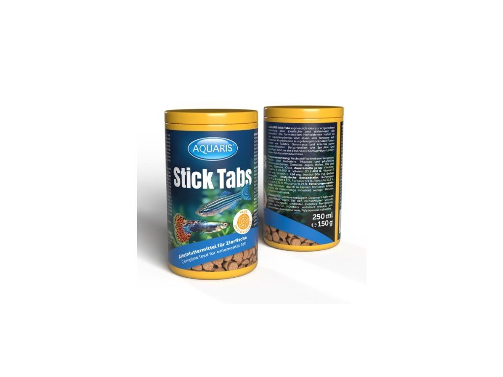Akvarijní ryby fascinují svými zářivými barvami a elegantním pohybem ve vodě. Každý akvarista chce tuto krásku obdivovat co nejčastěji a zároveň svým rybám poskytnout druhově vhodnou a pestrou stravu. Právě proto jsme v AQUARIS vyvinuli naše Stick Tabs – chutnou pochoutku ve formě samolepicích tablet, které se jednoduchým stisknutím prstu přilepí na sklo akvária a umožní tak dokonale pozorovat i plaché ryby při krmení.