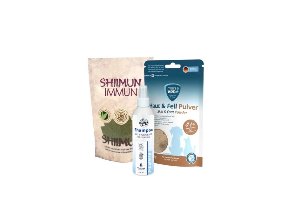 Balíček při problémech s pyodermií - 120g Shiimun Immun + 125g Haut - Fell + 250ml Šampon Pyo Healt
